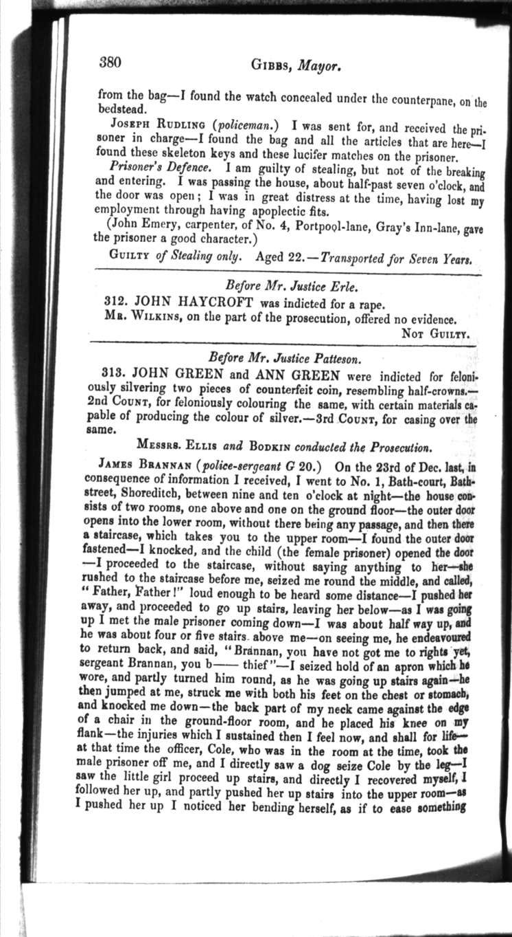 The violence was exaggerated. The newspaper describes Green seizing a bottle of vitriol and dashing it at the officers, as though it were a deliberate acid attack. Brannan’s sworn testimony at trial is more measured: Green reached over his shoulder, picked up a bottle, and smashed it on the table. The contents splashed onto those nearby. Green’s own defence — that Brannan pulled him down and that he never kicked the officer — does not appear in the newspaper at all.